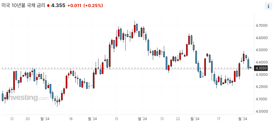 10년물은 4.34%대에 2년물은 4.7%대에 하락 마감했습니다.