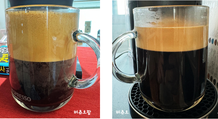 버츄오에서 추출된 커피가 훨씬 맛이 좋다라는 느낌이었습니다.