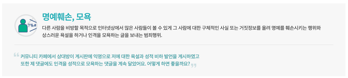 #명예훼손죄 #모욕죄 #사이버명예훼손죄 #불법촬영 #유포피해 #유포협박 #불안피해 #사진합성 #사이버성폭력 #사이버성희롱 #디지털그루밍 #온서울세이프 #SNS인권위원회 #사이버범죄신고 #경찰청 #성립요건 #사실의적시 #비방할목적 #공연성
