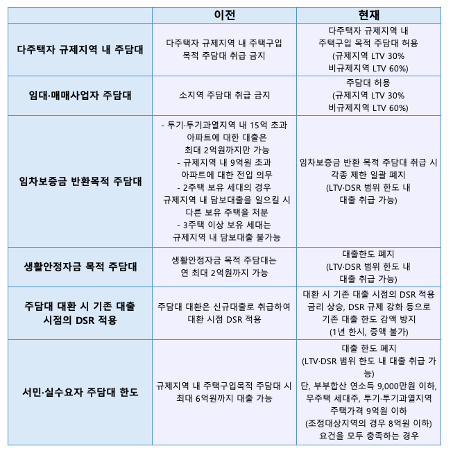 #주택담보대출 #주담대 #스트레스DSR #DSR #LTV #LTI #대출규제 #대출완화 #대환대출 #무주택자 #다주택자 #임대및매매사업자 #규제지역 #비규제지역 #임차보증금 #생활안정자금 #주담대한도