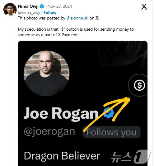 암호화폐 인플루언서인 조 로건이 이날 자신의 X에 X가 결제에 도지코인 도입을 추진하고 있다는 게시물은 올렸습니다.