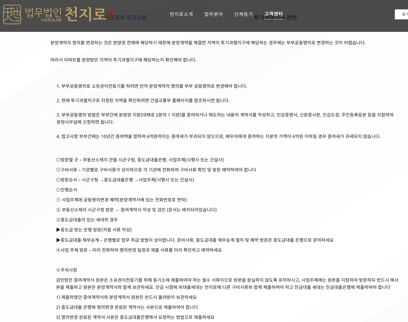 분양계약자 공동명의로 변경하는 방법