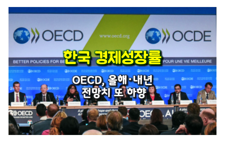 경제협력개발기구(OECD)가 올해 한국경제 성장률 전망치를 종전 2.5%에서 2.3%로 0.2%p 하향 조정했습니다. 내년 성장률 전망 역시 2.2%에서 2.1%로 낮췄습니다.