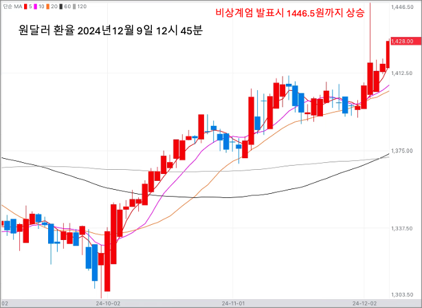 비상계엄 사태로 이달 3일 밤 원·달러 환율이 15년 8개월 만에 최고치인 1446.5원까지 치솟는 등 고환율 공포가 확산하고 있습니다.