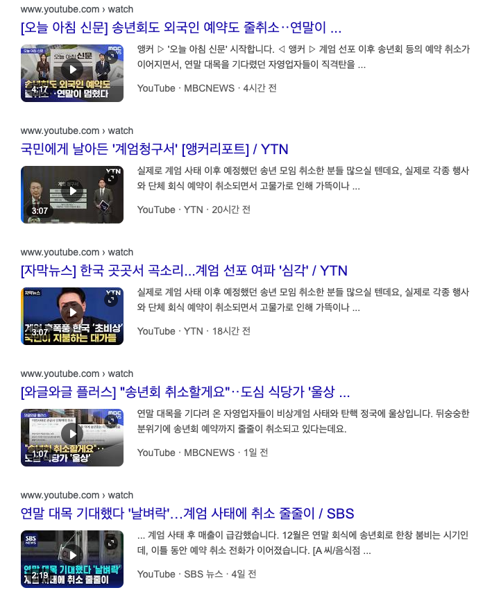 계엄 대가, 줄줄이 연말 예약 취소...자영업자 어떻게