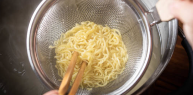라면의 면을 끓는 물에 데쳐 버린 후 끓이면 지방이 1/3로 줄고 열량이 100kcal 이상 줄어듭니다.