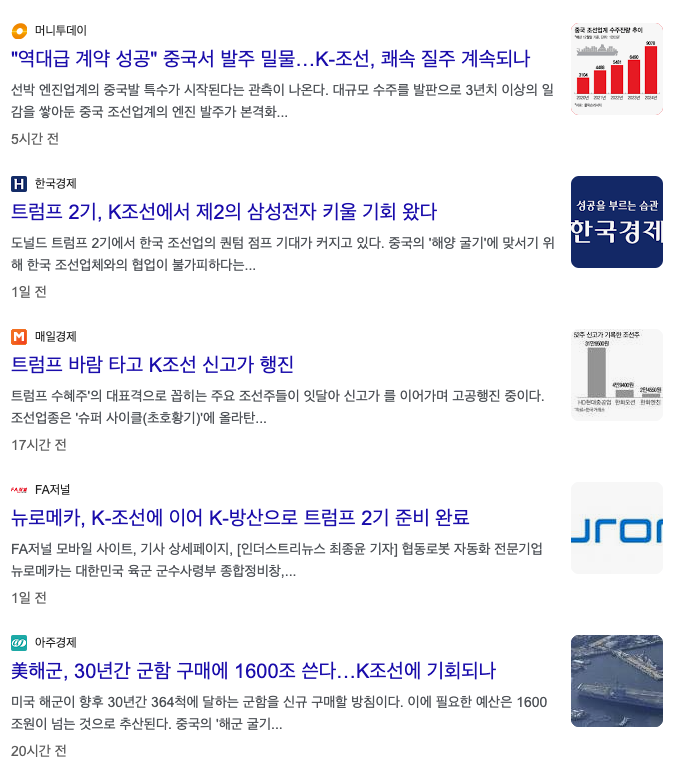 조선 관련주...트럼프, 한국 조선에 러브콜