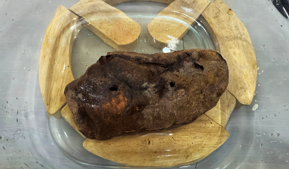 4. 군고구마를 잘라봅니다. 맛있게 구워졌을까요?