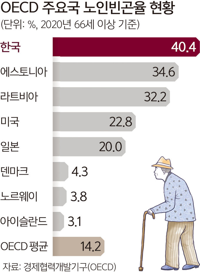 노인빈곤율 1위..높은 경제활동 참가율과부실한 공적연금 제도