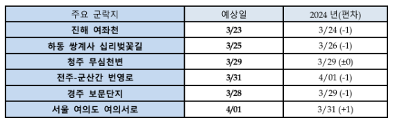 벚꽃 나들이를 계획하시는 분들은 해당 지역의 개화 및 만개 시기를 참고하여 일정을 조율하시기 바랍니다.