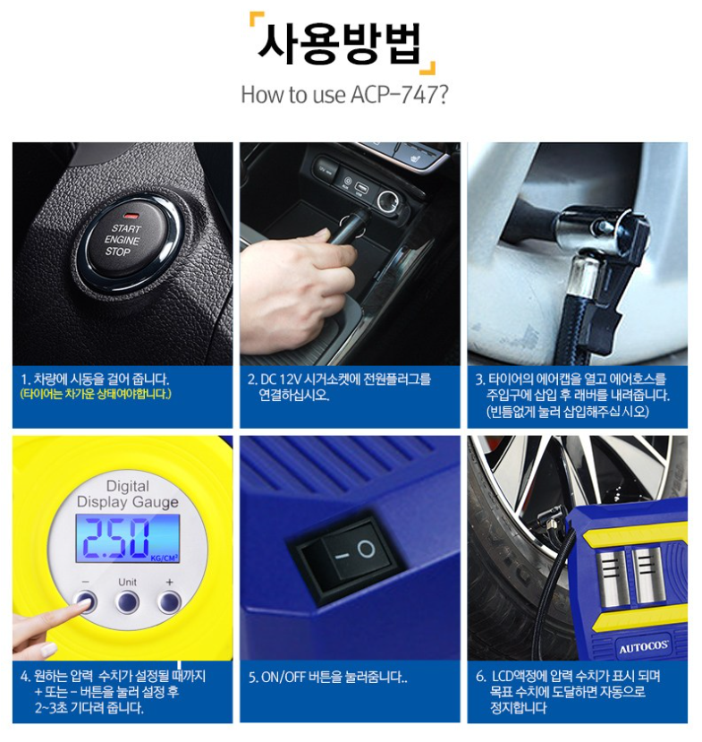 차량용 타이어 공기주입기를 추천하고자 합니다.