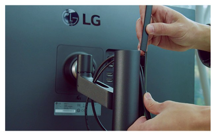 케이블은 스탠드 안에 쑥 넣어서 깔끔하게 정리할 수 있고, 스탠드 전체가 움직이기 때문에 손가락이 끼일 염려가 없어