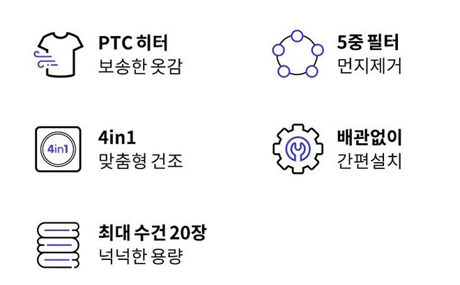 👚 오직 PTC히터를 이용하여 옷감 손상없이 효율적인 보송한 건조