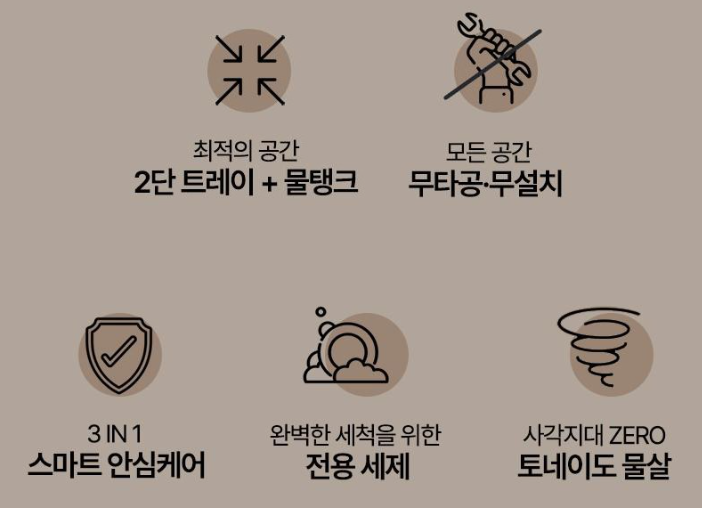 최적의 공간활용 2단 트레이 + 물탱크