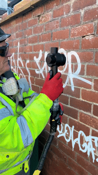 정말 저비용, 초스피드로 담장 낙서를 지워버리네요.