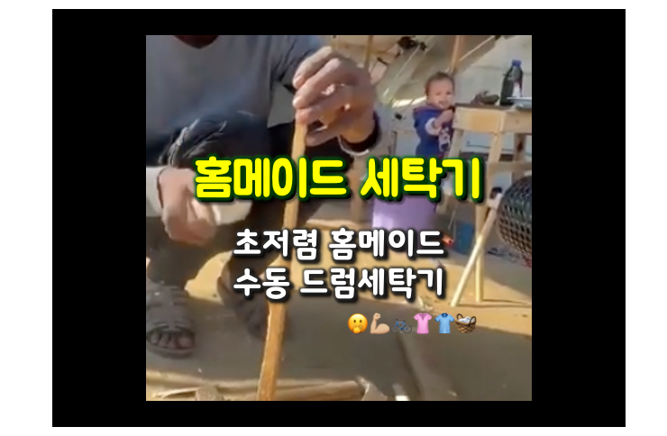수동 드럼 머신을 집에서 만들어 빨래를 할 수 있는 영상.