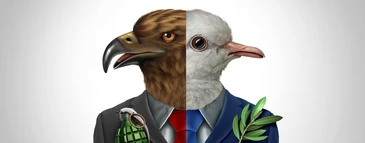 비둘기(dove)는 평화와 온건함을 상징하고, 매(hawk)는 공격성과 강경함을 상징합니다.