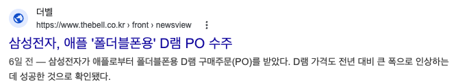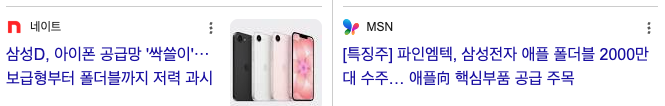→ 삼성디스플레이에 소재를 공급하고 있기 때문에 애플 폴더블 아이폰 디스플레이 공급망 간접 수혜 가능성이 거론됩니다.