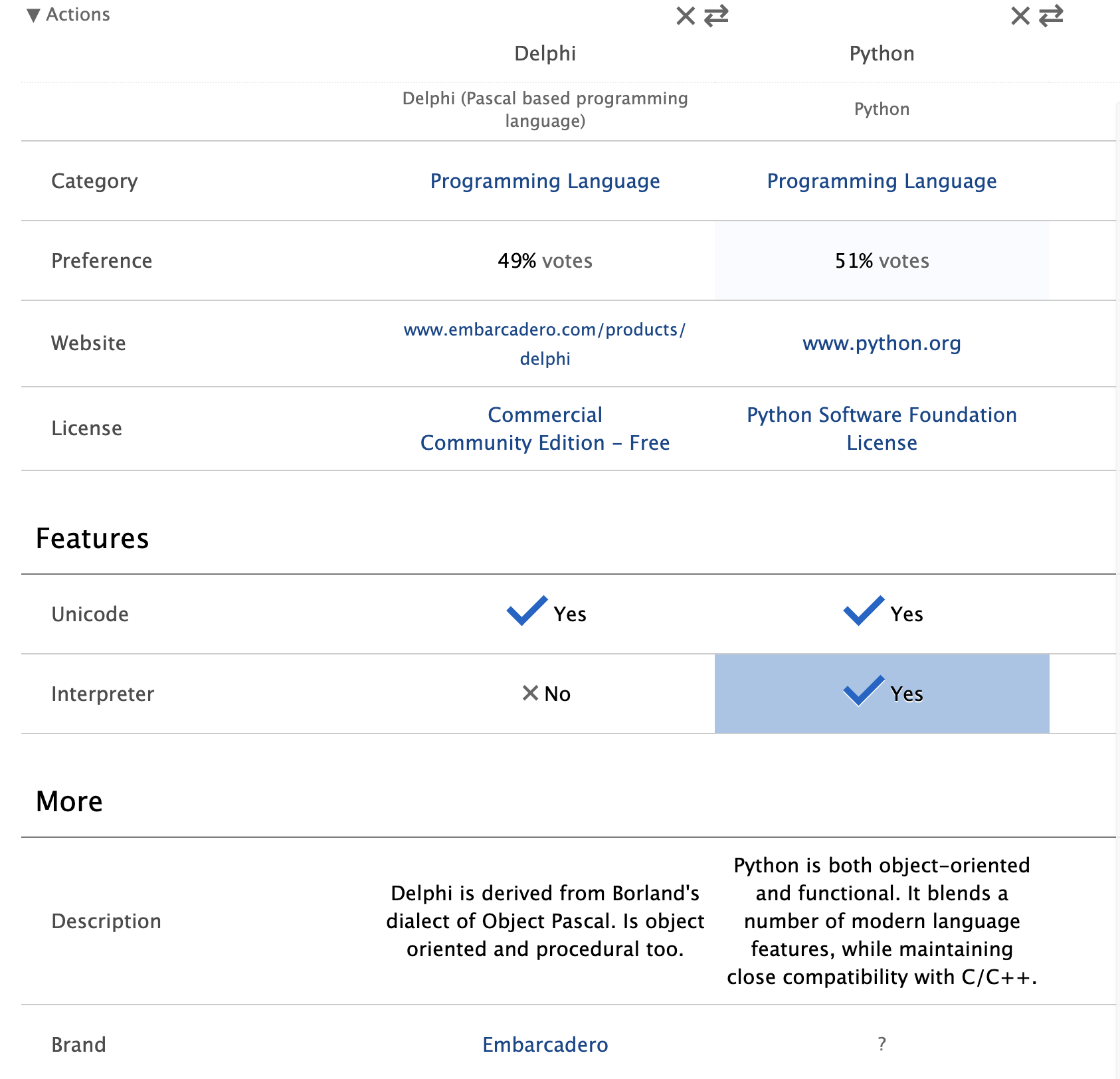 http://vschart.com/compare/delphi-programming-language/vs/python-programming-language