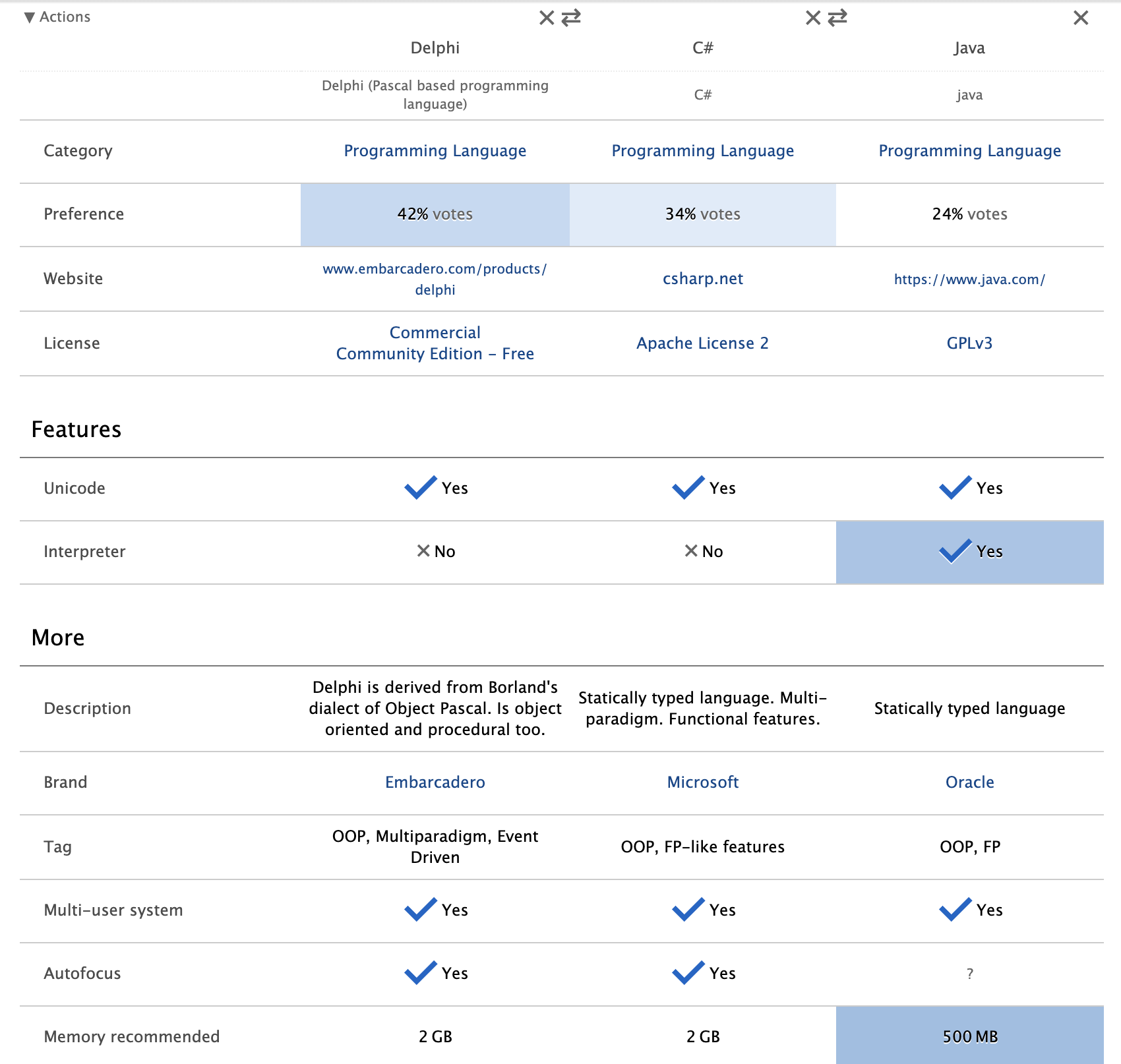 출처 : http://vschart.com/compare/delphi-programming-language/vs/c-sharp/vs/java-programming-language