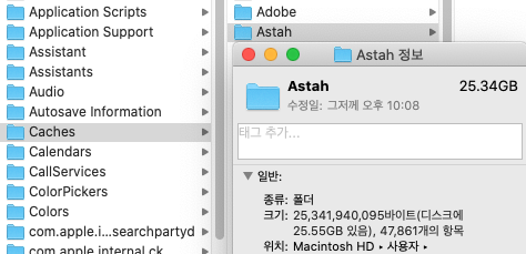 맥북 캐시 폴더 용량이 기타 영역 용량과 거의 같더군요.