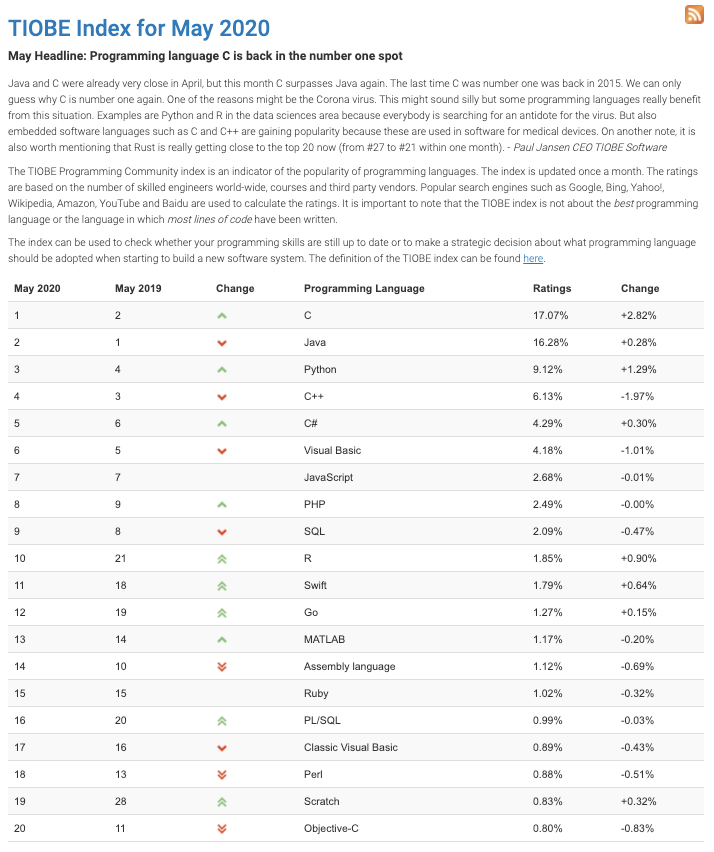 매달 인터넷 여러 사이트에서 발생하는 키워드, 태그를 가지고 개발 언어 순위를 매기는 사이트입니다.