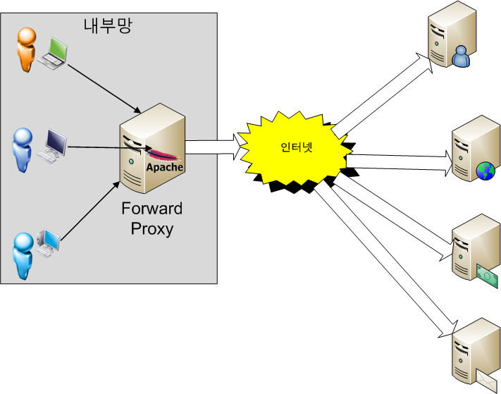 망 내에서 외부로의 서비스 이용은 (포워드) 프록시