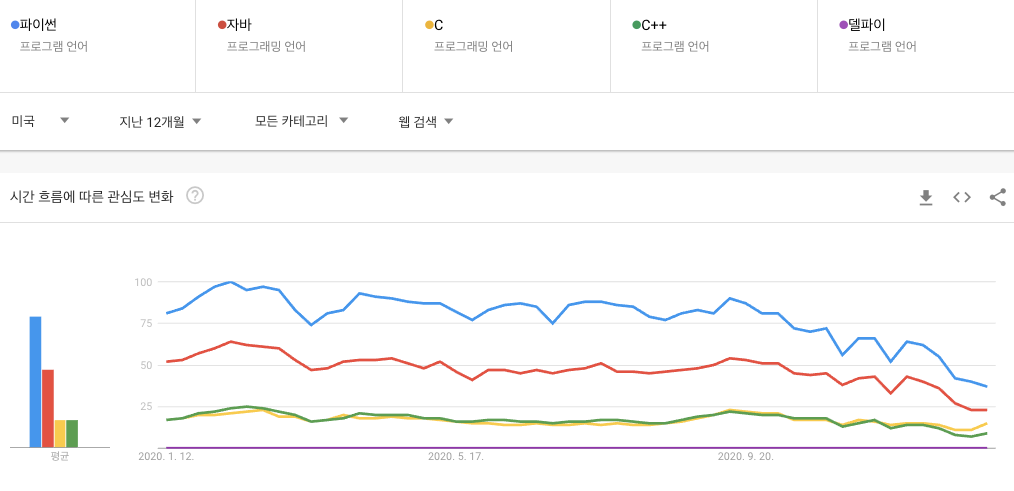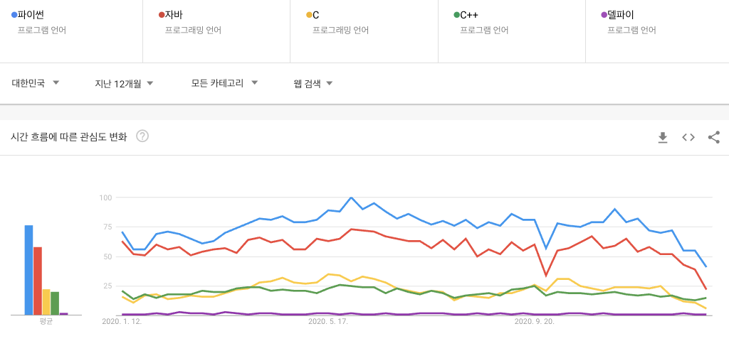 다음은 한국의 구글 트렌드 개발언어 비교순위