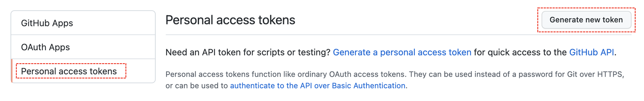 3. Personal access tokens > Generate new token을 클릭합니다.