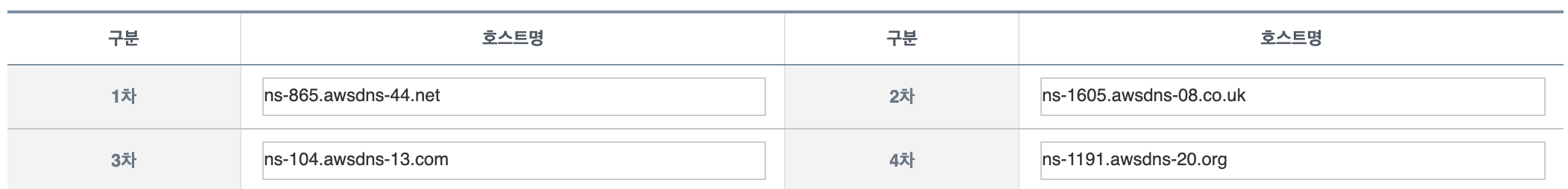 여기에 나온 값을 도메인 등록사이트의 Name Server 에 등록합니다.