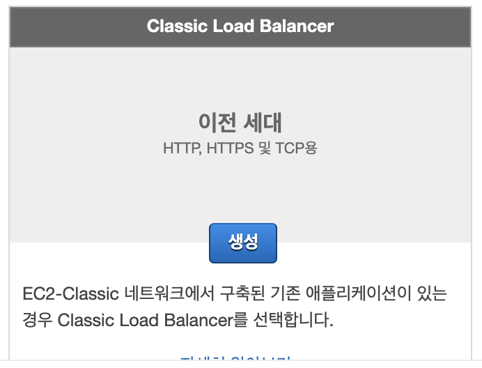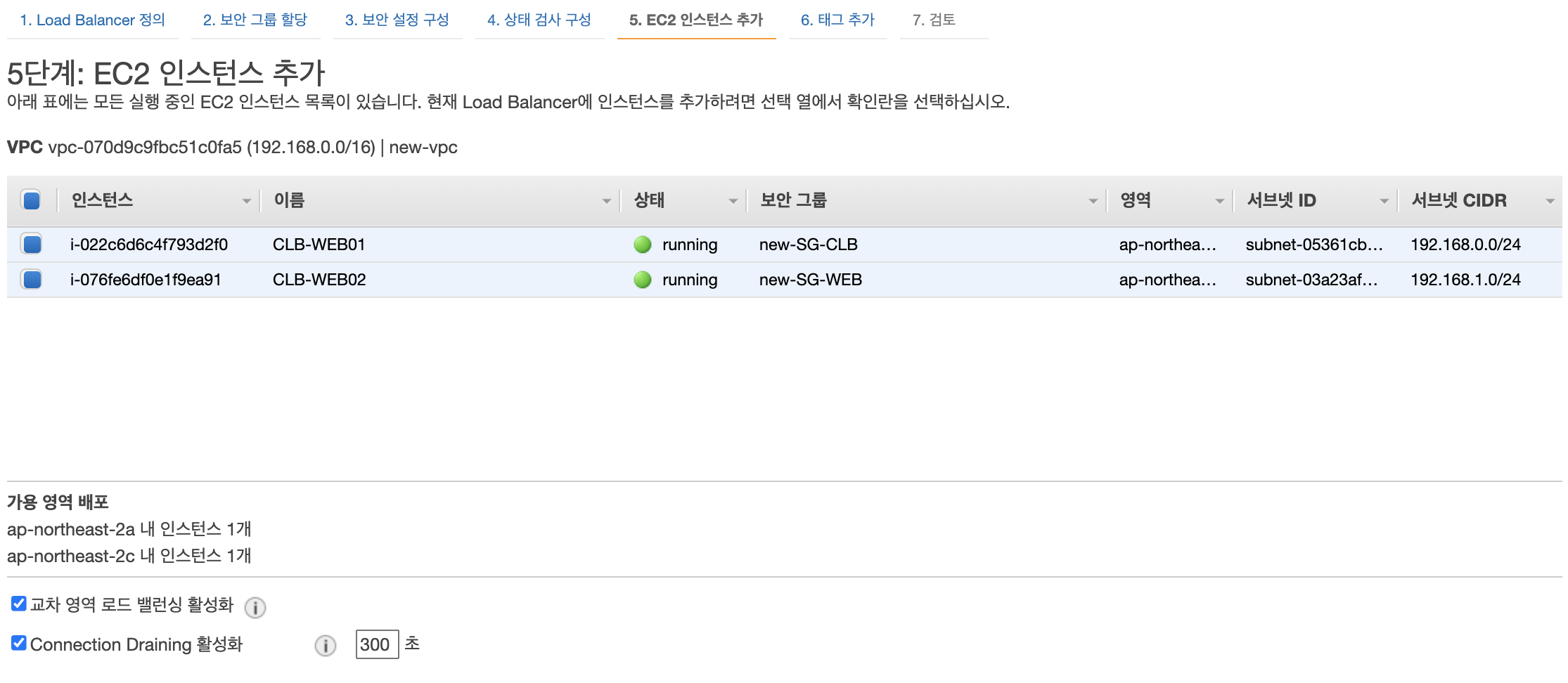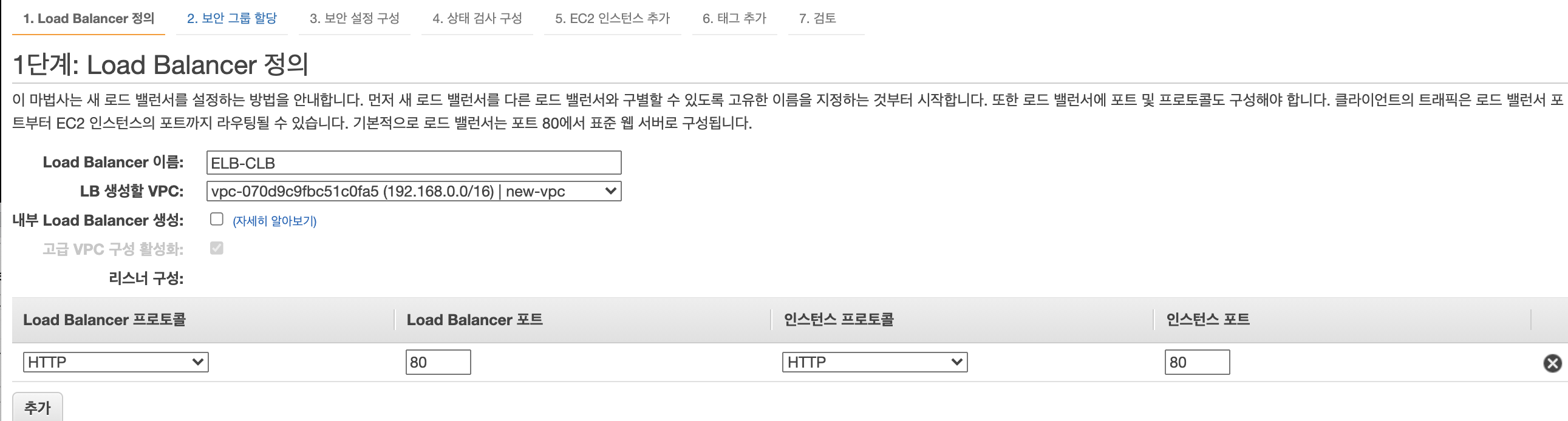 로드밸런서 설정의 "ELB-CLB" 내부에서