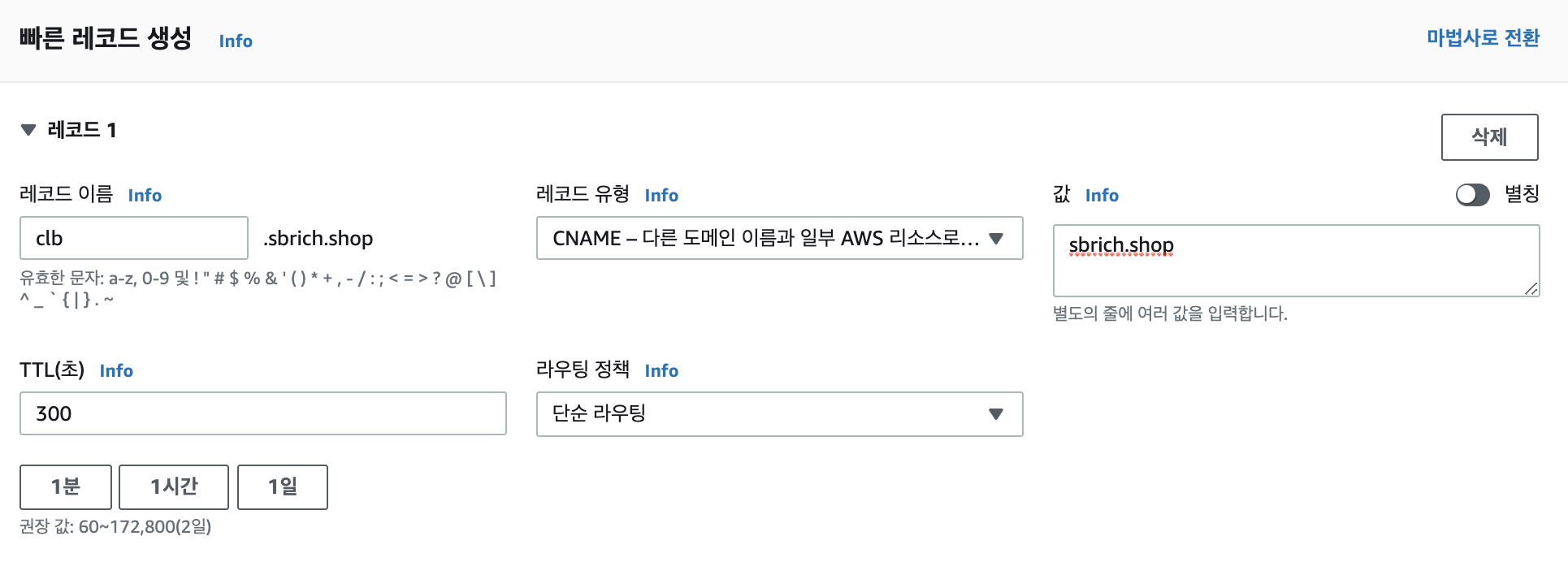 - 레코드 생성 레코드명 : clb <-- clb.sbrich.shop