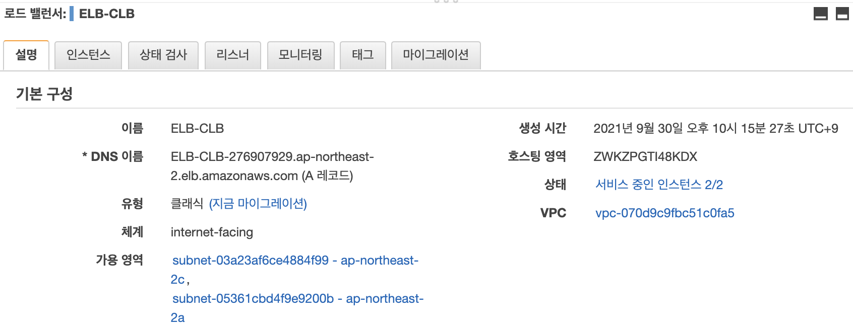 이제 "ELB-CLB" Load Balancer 생성완료했습니다.