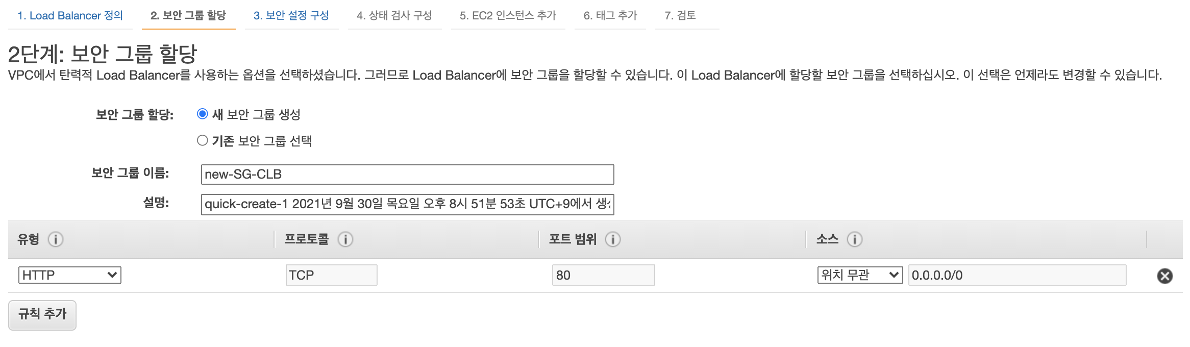 3) 보안그룹 : "new-SG-CLB" <- 생성중 할당