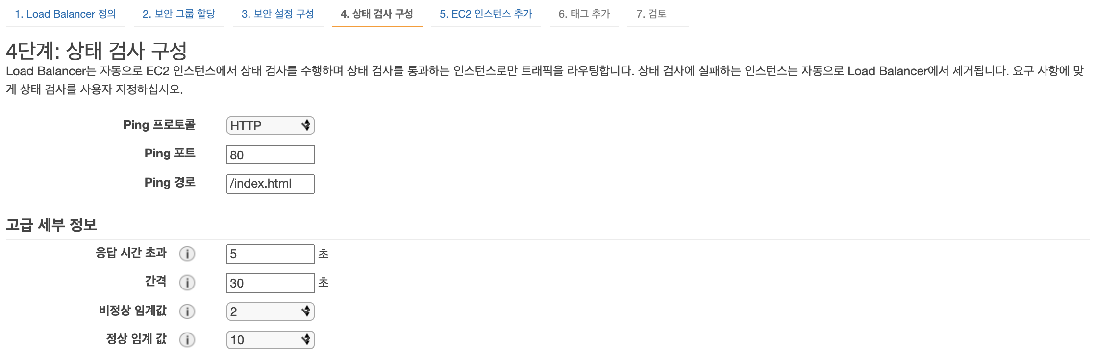 ** sticky session 설정 : 로그인 후 세션이 12시간이나 24시간으로 해서 같은 인스턴스로 접속하게 해서 세션이 남아 있도록 하여 설정시간내에는 동일한 인스턴스로 포워드 되는 기능. 서비스 사이트의 경우 접속자가 해당 세션을 유지하도록 하기 위해서 기능이 필요합니다.