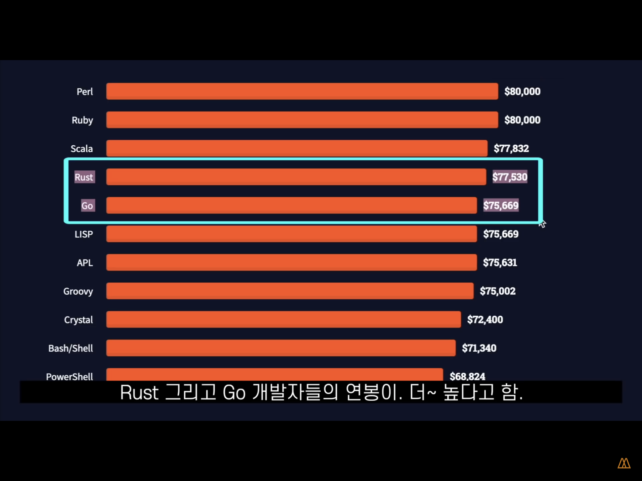 Perl, Ruby, Scala 개발언어가 연봉이 높습니다.