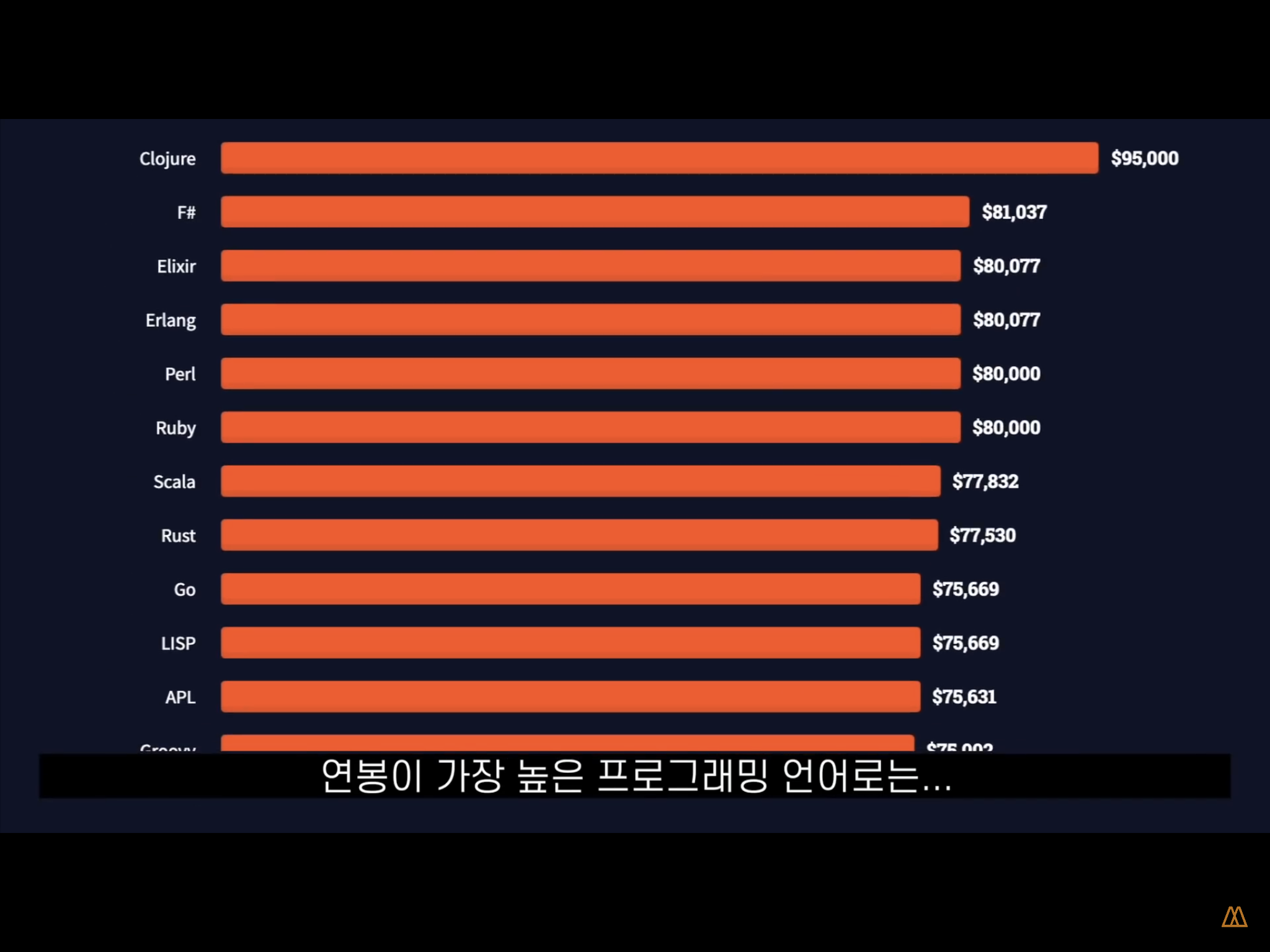 Perl, Ruby, Scala 개발언어가 연봉이 높습니다.