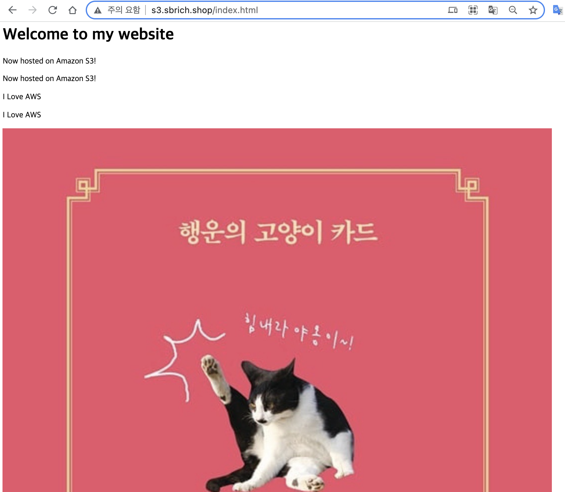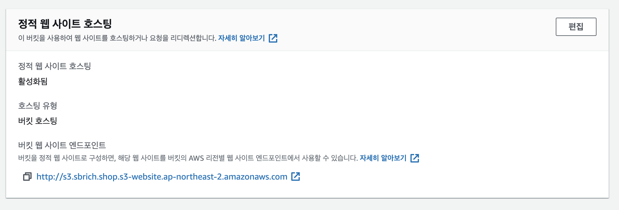 이제 생성된 url은 'http://s3.sbrich.shop'입니다.