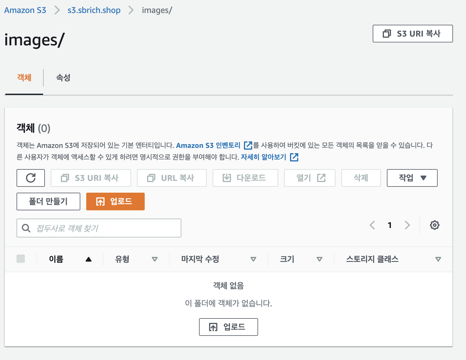 s3 uri를 확입합니다. "s3://s3.sbrich.shop/images/"