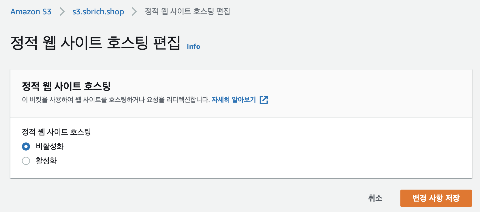 4. 정적웹사이트 호스팅 활성화