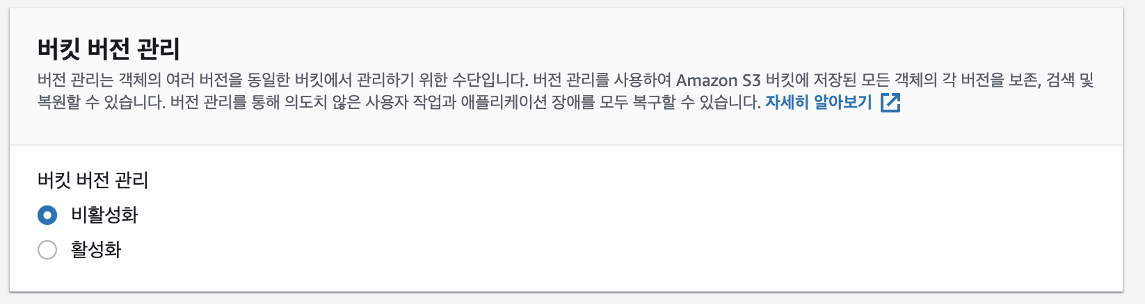 버전관리는 실습과정에서는 '비활성화' 하도록 하겠습니다. 실무에서는 필요에 따라 버전관리를 '활성화'하여 이용하세요.