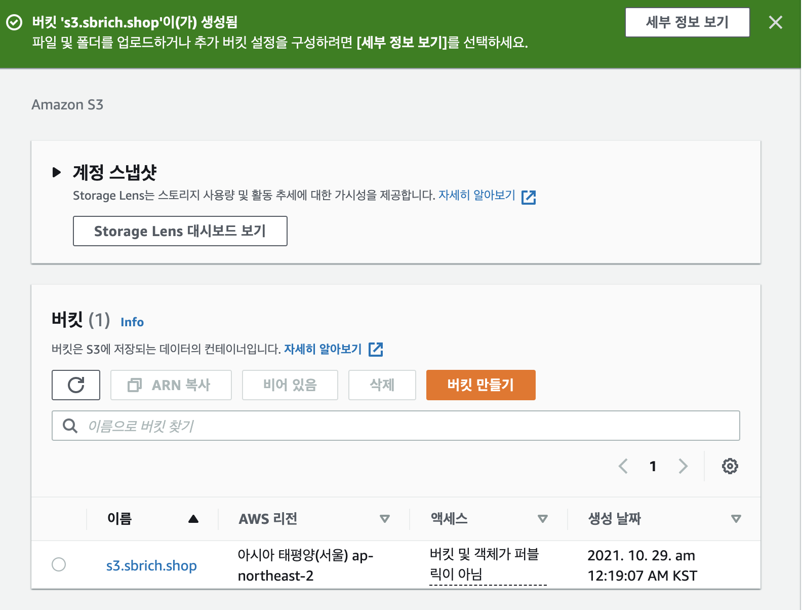 버킷이 생성되었습니다.
