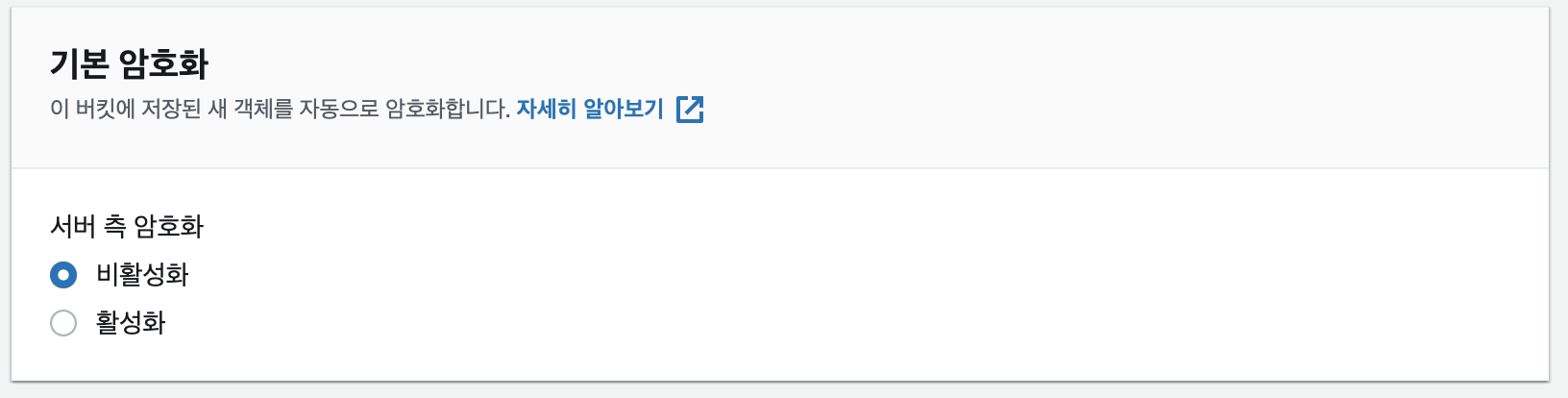암호화 관리도 실습과정에서는 '비활성화'하도록 하겠습니다.