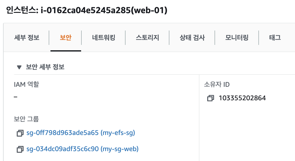 보안그룹 'my-efs-sg'를 추가합니다.