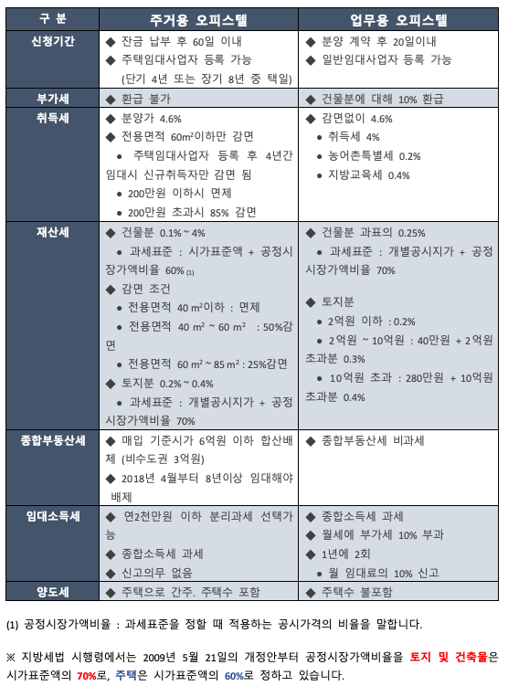 주거용 오피스텔과 업무용 오피스텔의 세금 차이