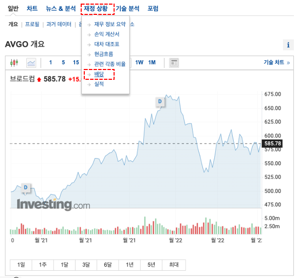 3) 배당정보를 클릭합니다.