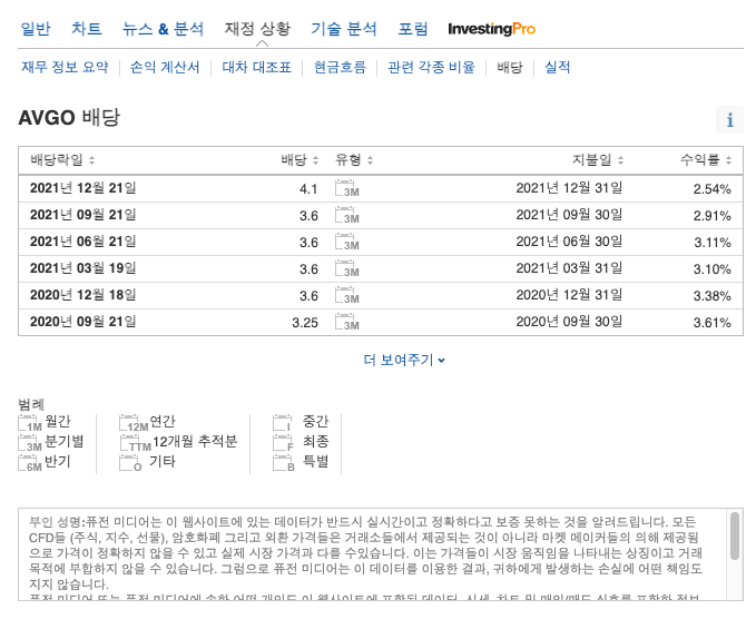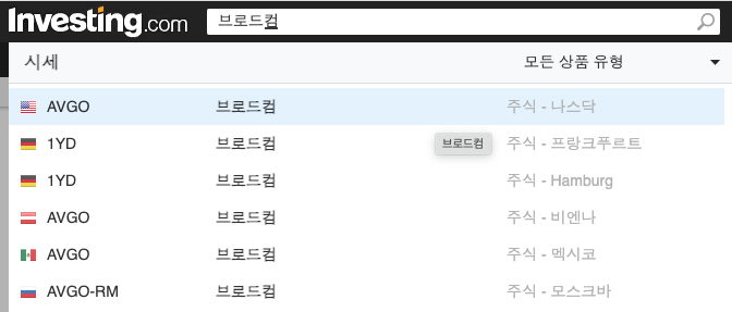 해외 주식의 경우, 종목코드 티커가 있는데 이를 잘 이용하면 편리합니다. 배당금이 높은 '브로드컴'을 살펴보겠습니다.