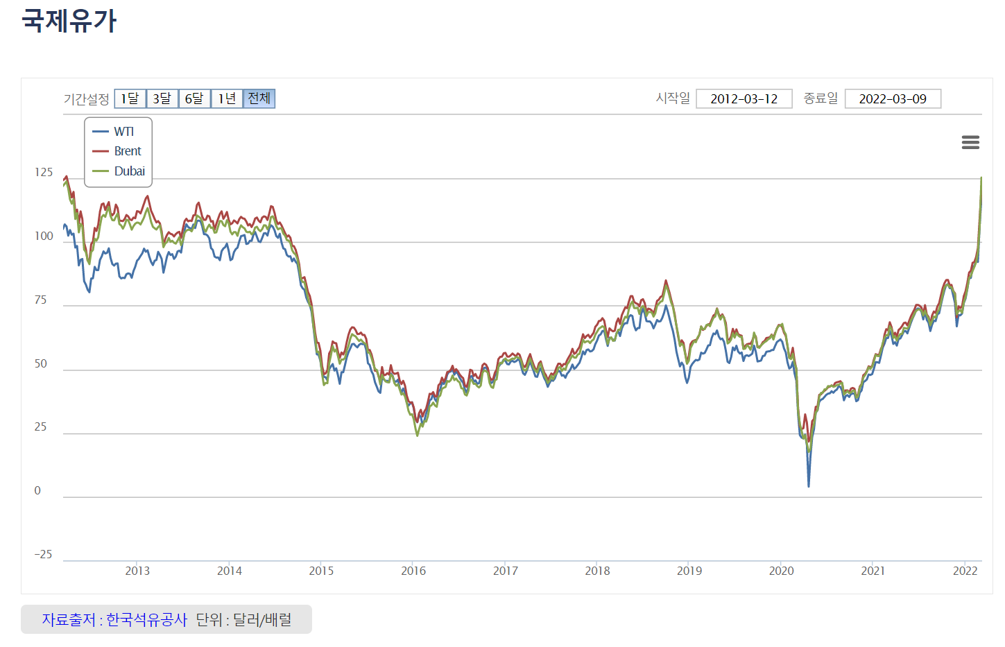 이는 바로 국제 유가인데요. 이번에는 러시아의 우크라이나 침공 전쟁과 미국, EU의 러시아 제재와 연관이 깊습니다.