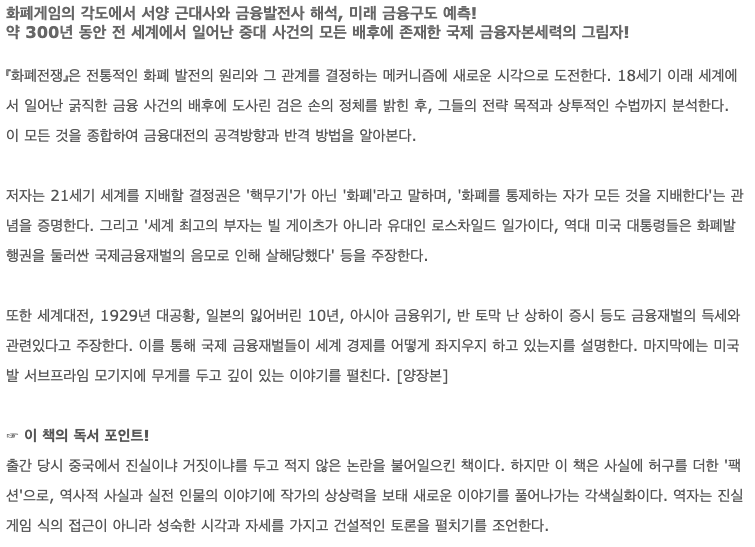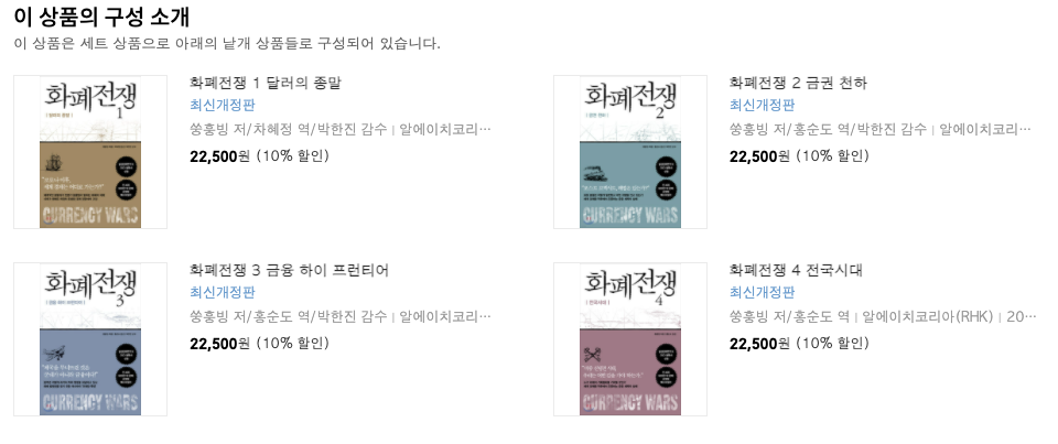 이 상품은 YES24에서 구성한 상품입니다.(낱개 반품 불가).[도서] 화폐전쟁 1 달러의 종말 (최신개정판)“코로나 이후 세계 경제, 어디로 가는가?”세계적인 금융위기 전문가 쑹훙빙이 말하는 화폐