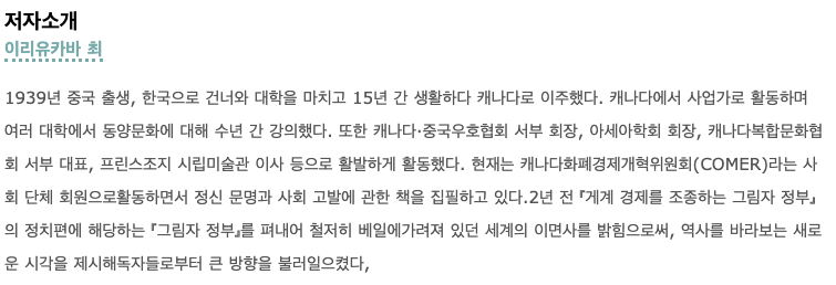 조만간 읽어보리라.... 정부의 역할과 현실에 대하여 알아보고 싶다... 정치적인 면은 아니지만